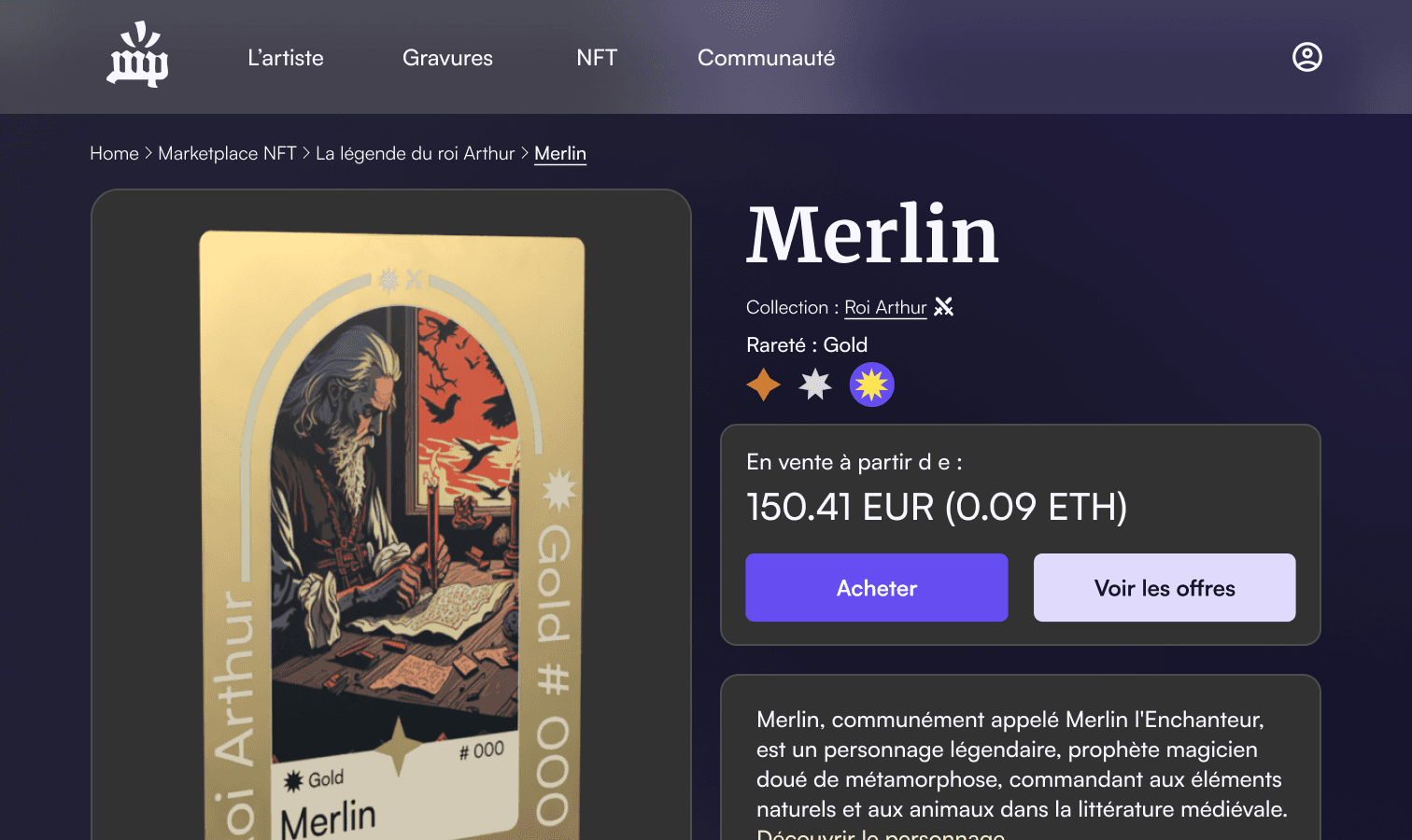 Medieval-themed trading card collection platform where each card exists as an NFT. It combines fantasy artwork with blockchain technology to offer a unique and collectible digital experience.